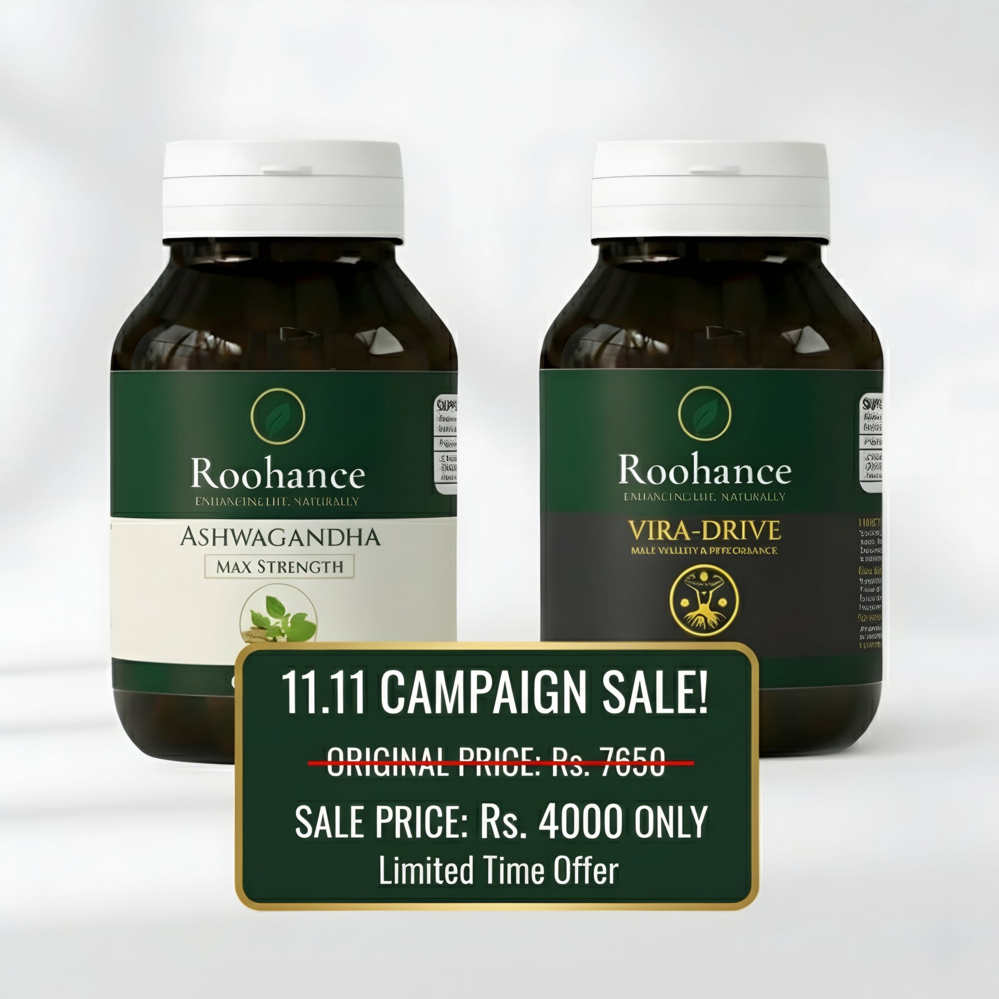 Experience the synergy of ancient wisdom and modern vitality! Our **Roohance Ashwagandha & Vira-Drive Bundle** is expertly crafted to transform your male power, energy, and mental clarity. This dynamic duo works in harmony to provide unparalleled support for married men seeking to restore peak physical and mental performance.